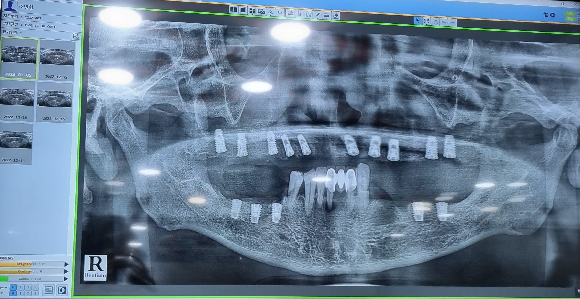 CT 촬영을 통해 구강口腔健康내 상태등을 검사하고 윗턱의 경우 모두 치아齒牙가