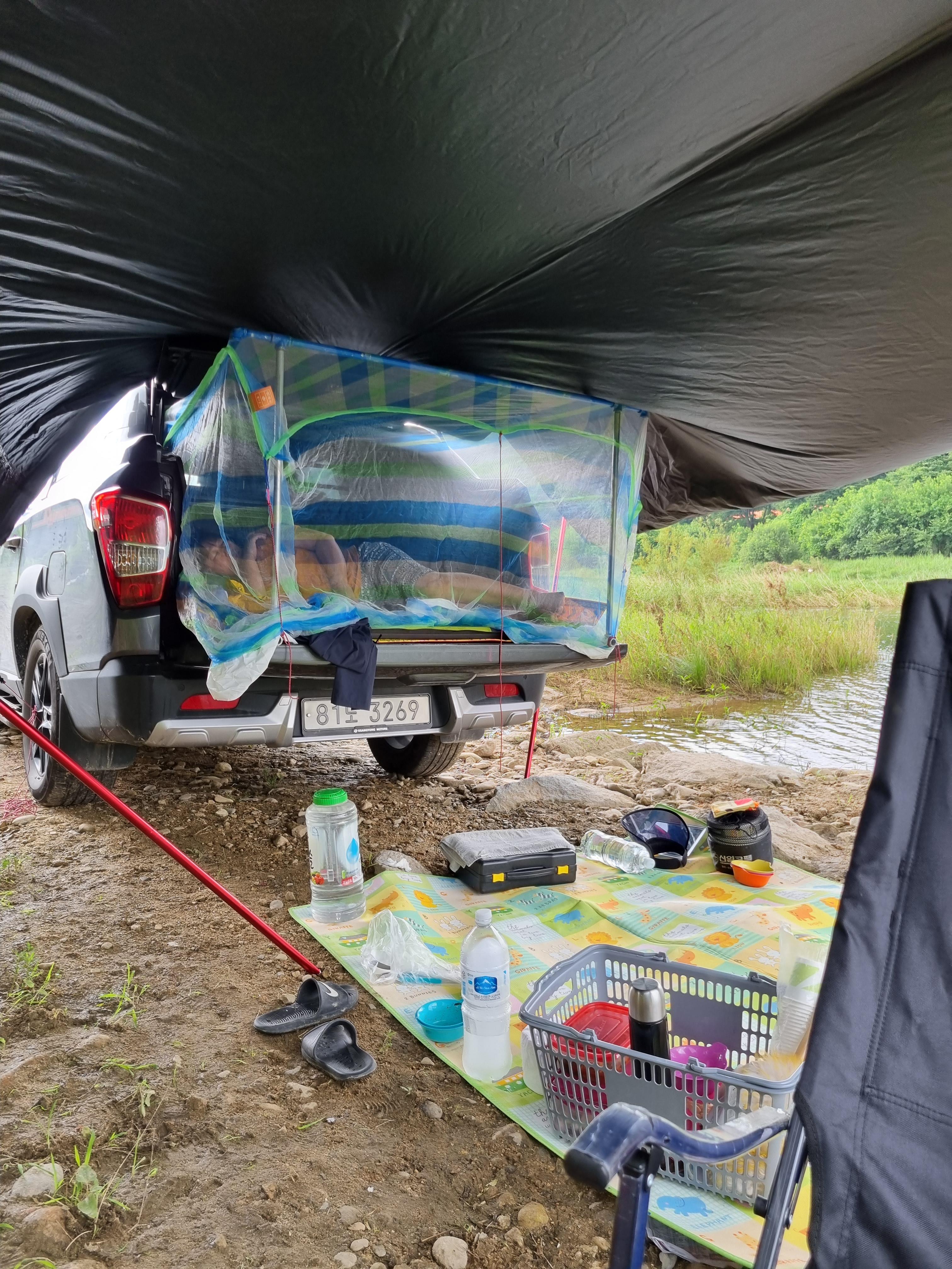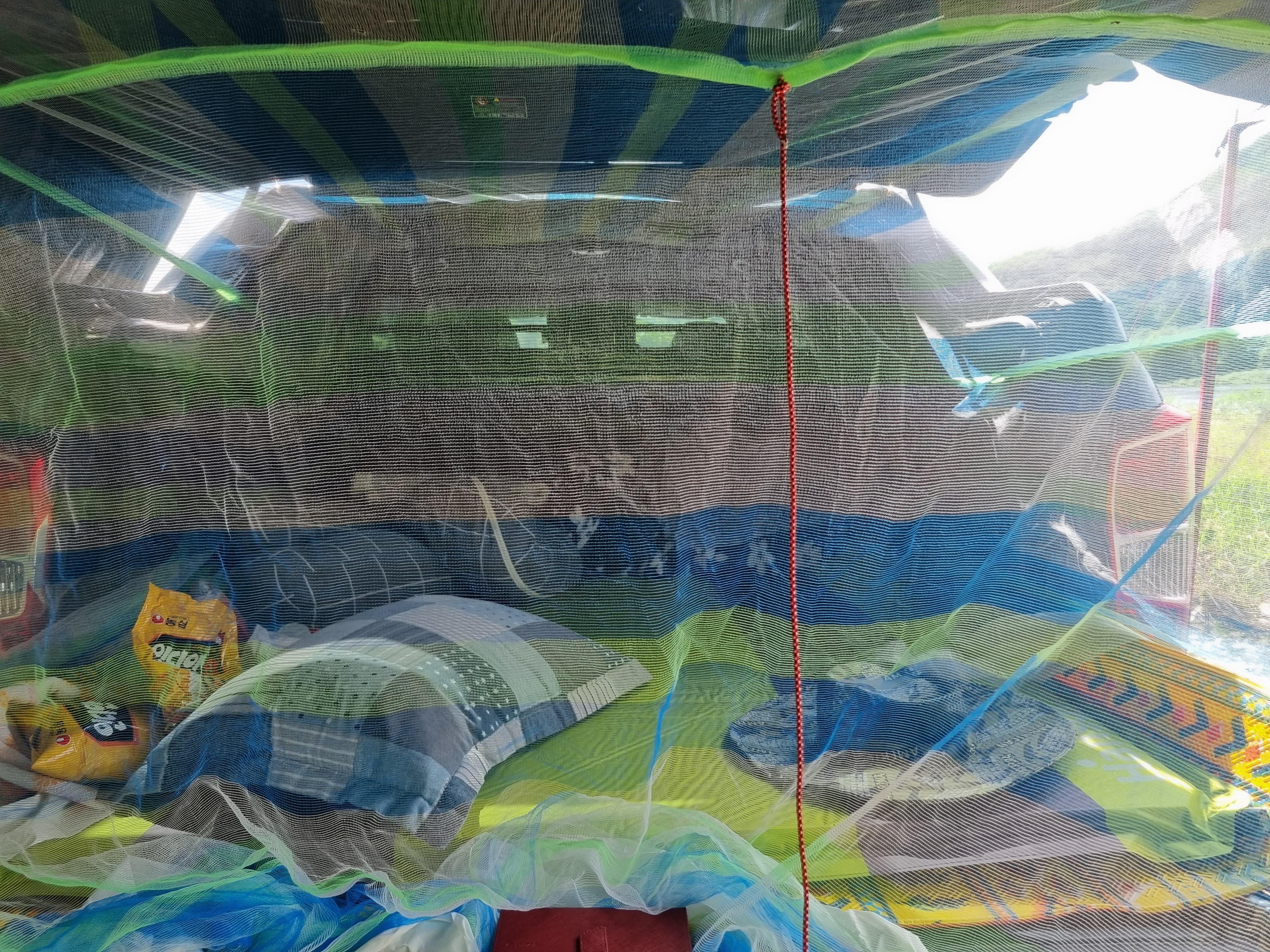 모기나 벌레가 차 안에 들어오는 걸 막는 데는 모기장이 필수.